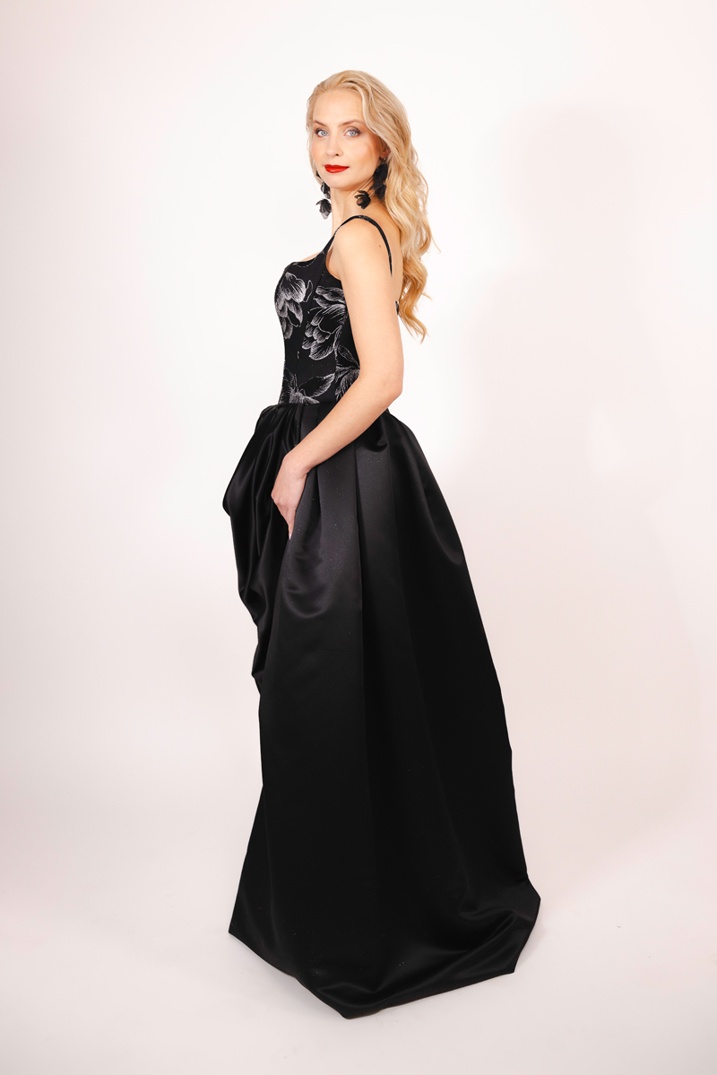 Dieses Hochzeitskleid dient als Inspirationsbeispiel für unsere exklusiven Maßanfertigungen. Jedes Brautkleid wird individuell nach Ihren Wünschen und Maßen gefertigt – von der Silhouette bis hin zu den kleinsten Details. Wählen Sie aus einer Vielzahl edler Stoffe wie zarter Spitze, fließendem Chiffon oder opulentem Satin. Mit liebevollen Verzierungen wie handgearbeiteten Stickereien, funkelnden Perlen oder filigranen Applikationen gestalten wir Ihr Traumkleid ganz nach Ihren Vorstellungen.