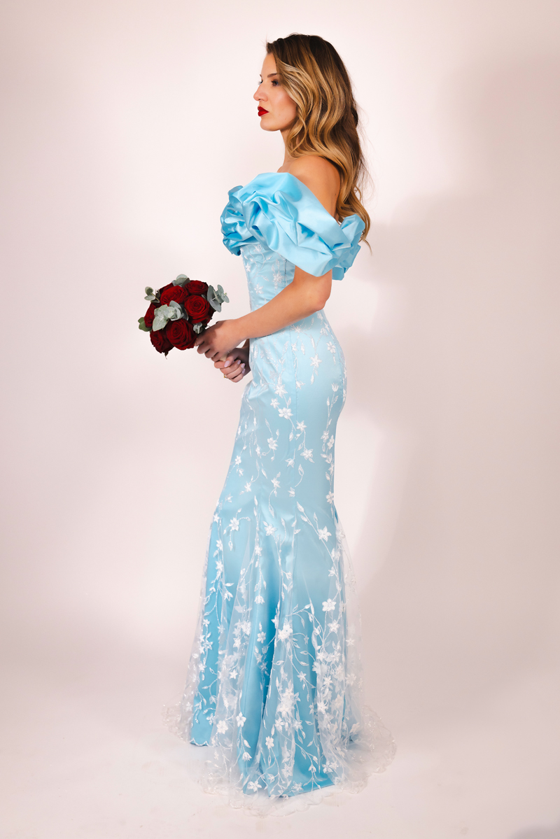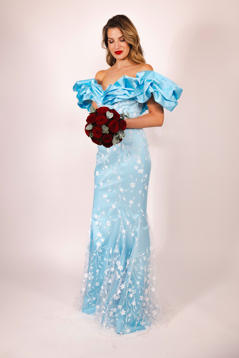 Dieses Hochzeitskleid dient als Inspirationsbeispiel für unsere exklusiven Maßanfertigungen. Jedes Brautkleid wird individuell nach Ihren Wünschen und Maßen gefertigt – von der Silhouette bis hin zu den kleinsten Details. Wählen Sie aus einer Vielzahl edler Stoffe wie zarter Spitze, fließendem Chiffon oder opulentem Satin. Mit liebevollen Verzierungen wie handgearbeiteten Stickereien, funkelnden Perlen oder filigranen Applikationen gestalten wir Ihr Traumkleid ganz nach Ihren Vorstellungen.